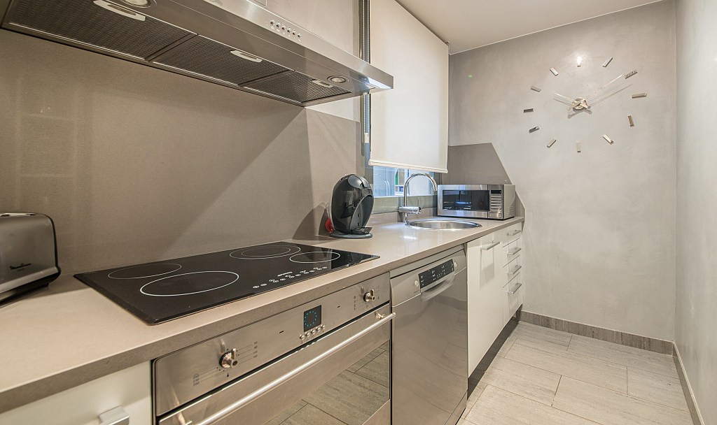 ***** I stayed 12 weeks in this apartment during a very hot summer of 2022. I liked everything about the apartment including the excellent air conditioning, comfortable king bed, and nice bathroom. Also, the location was perfect for exploring Barcelona as it is very central. There are plenty of nearby restaurants and lots of shopping opportunities. Metro is near as well. I did not cook much but kitchen was very nice for breakfast and coffee.
