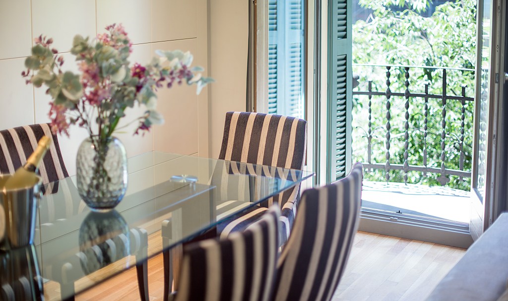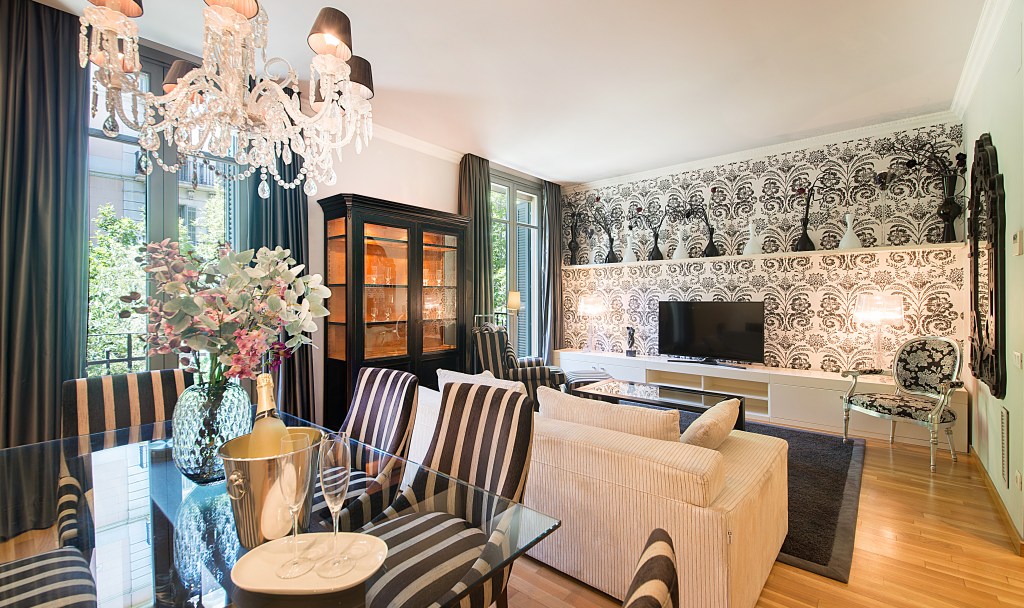 Located on the corner with Rambla de Catalunya in the most beautiful part of the Eixample district, this apartment offers the guest the best of both worlds; close enough to Plaza Cataluña, Las Ramblas, La Boqueria market, El Born or the Gothic Quarter which all can be reached within 10 minutes walking down gorgeous Rambla de Catalunya. On the other hand famous sights such as La Pedrera and Casa Batlló are just a stone through from the apartment. Also Sagrada Familia, the symbol of Barcelona can be reached walking within about 15 minutes. Paseo de Gracia; 2 blocks from the apartment is Barcelona’s wealthiest avenue. Here is where all the famous designer brands have their stores.
