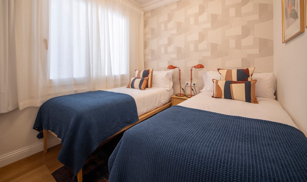 The residence, a brand-new testament to contemporary living, spans two bedrooms and two meticulously designed bathrooms, providing an oasis of comfort in the city’s vibrant center. The master suite is a sanctuary of serenity, featuring a king-size bed and an en suite bathroom that rivals the finest spas, ensuring a lavish retreat after a day exploring the cultural wonders of Barcelona.
