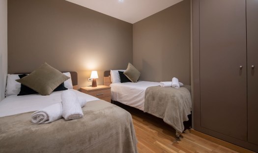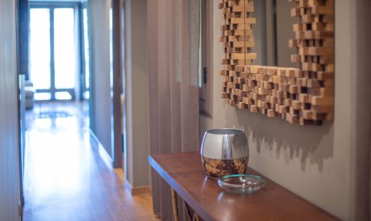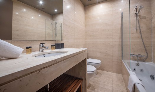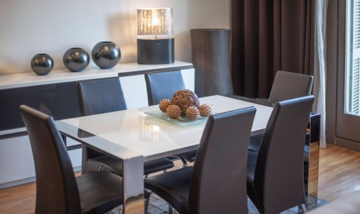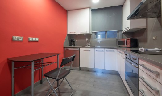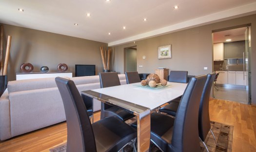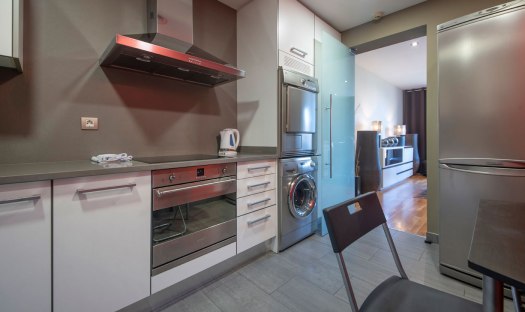 The apartment feels cozy, comfortable and welcoming. It offers 3 bedrooms and can host up to 7 guests. The first bedroom comes with a double bed, a large wardrobe and en-suite bathroom with tub/shower, WC, bidet and sink. The second bedroom offers 2 single beds, a big cupboard and a full size mirror. The third bedroom is a single room and comes with a desk and a wardrobe. Right next to this bedroom is the second bathroom with shower, WC and sink. It is accessible from the long hallway. The living room of this apartment is spacious, faces Passeig de Gracia and has two small balconies from where guests can overview the avenue down to Placa de Catalunya; Barcelona’s main square. Further on, the living room is equipped with a comfortable chaise lounge sofa which converts in one easy movement into a comfortable double bed. Also in the living room and right next to the kitchen is the dinning area with a white glass table and 6 chairs. The fully equipped and modern kitchen is accessible from the living room’s dining area and offers everything necessary in case guests wish to prepare a meal. All appliances are top brands. At the guests, disposal are an induction stove, oven, coffee maker, fridge, freezer, dishwasher, washing machine, dryer, microwave, toaster, etc.