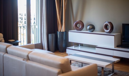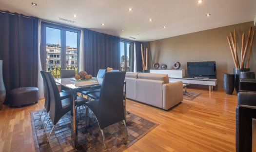 Spacious, luxurious, fully refurbished apartment with 3 bedrooms and 2 bathrooms on Paseo de Gracia only 1 block from Placa de Catalunya and 2 blocks from the Gothic quarter and Las Ramblas. Situated on the 3rd floor the living room has stunning views over this gorgeous avenue. The 3 bedrooms are interior and quiet. The rental is equipped with designer pieces as well as central AC/ Heating, WiFi, washer, dryer, etc. The in 1882 constructed beautiful building has a modern elevator & doorman.